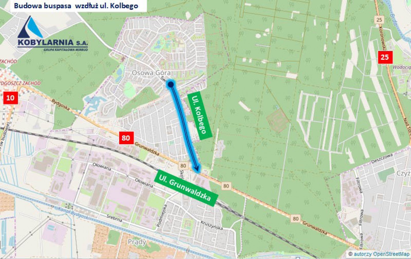 Budowa buspasa przy ul. Kolbego w Bydgoszczy